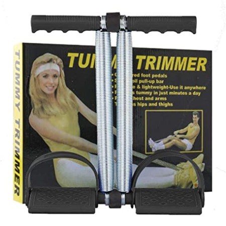 The Tummy Trimmer Double Spring Fitness Tummy Trimmer is a great product to help tone your muscles. It works on your tummy, chest, arms, hips, and thighs. The steel coil spring bar provides resistance as you pull it. This helps to burn more calories and get a firmer stomach. It is easy to use, and you can adjust the resistance. It is a simple way to get stronger muscles every day.
